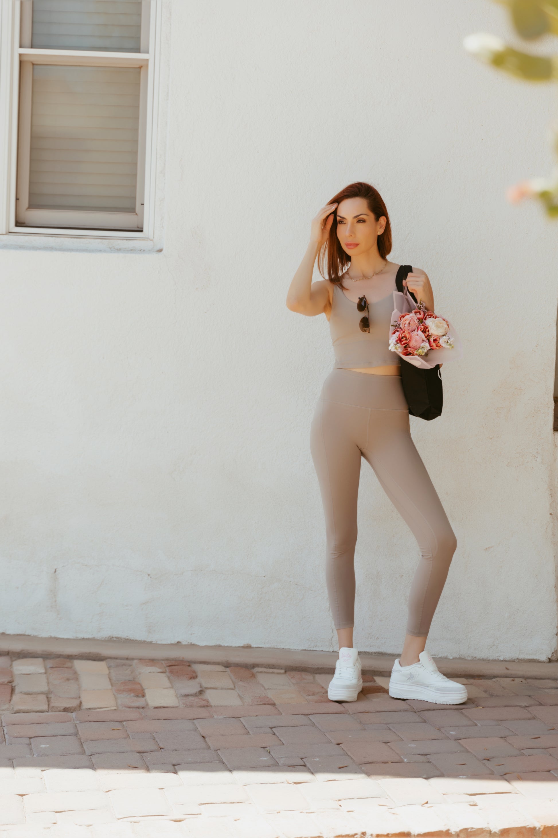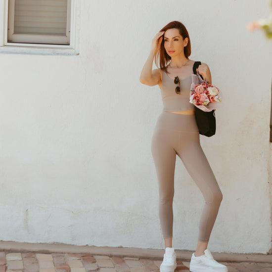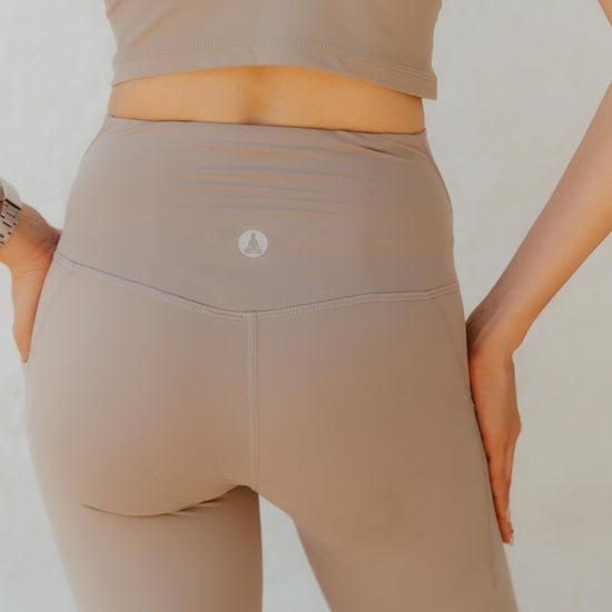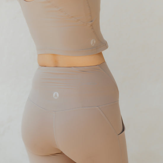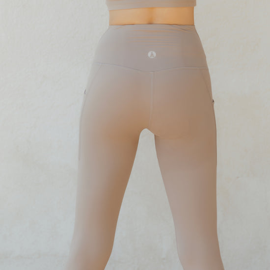 Designed with side pockets for functionality and an ultra-flattering high-rise waist, these neutral-toned leggings transition seamlessly from studio sessions to daily wear. Ethically crafted and consciously designed, they embody the soft power of the modern Goddess, grounded, confident, and effortlessly chic.